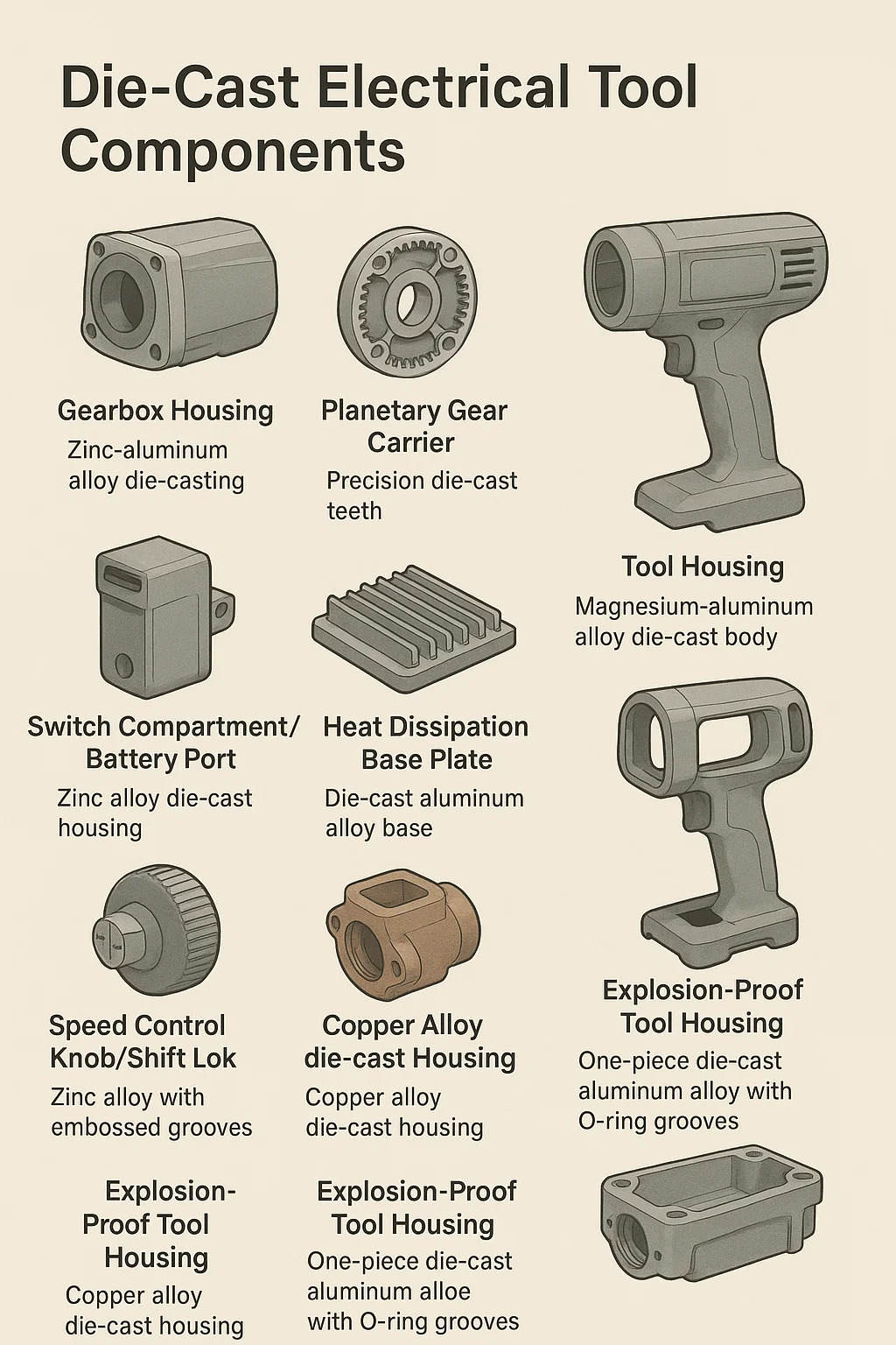 Detaljert forklaring av Die-Cast elektrisk verktøy Komponenter