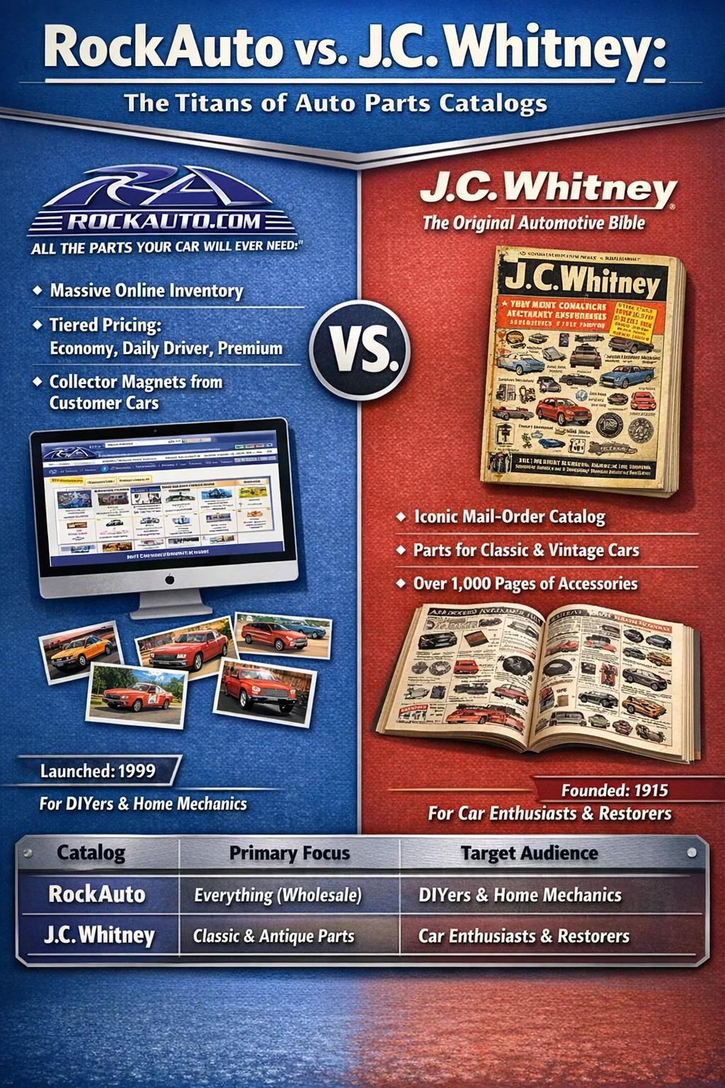 Når folk spør om den mest kjente bildelekatalogen, dominerer to navn samtalen: RockAuto feller den digitale tidsalderen og J.C. Whitney for historisk betydning. RockAuto har blitt den moderne gullstandarden, og tilbyr en uttømmende online database som dekker nesten alle bildeler produsert de siste tiårene. For de som husker epoken med postordrepapirkataloger, var J.C. Whitney den ubestridte kongen, kjent som "Bibelen" i bilindustrien.