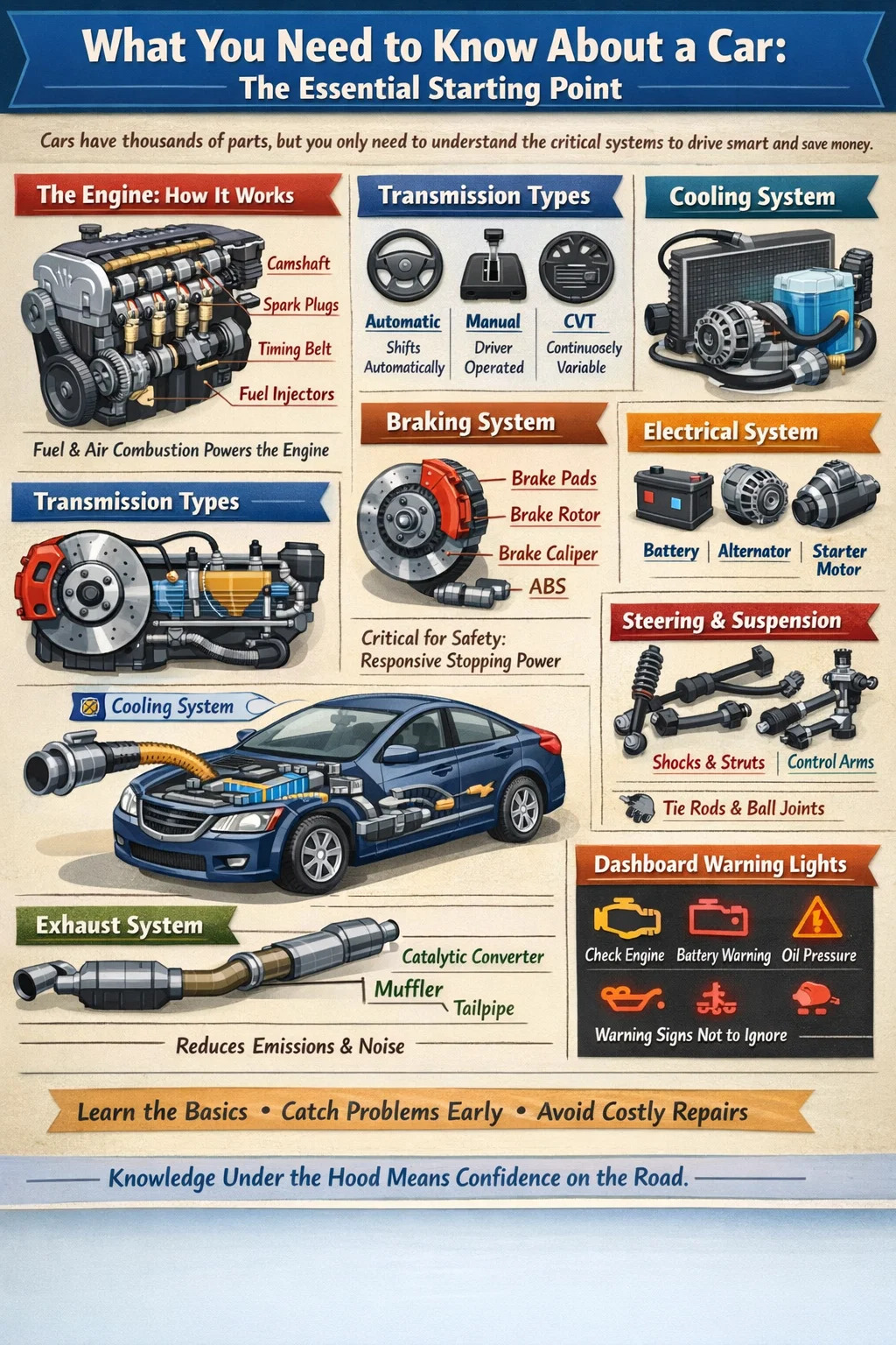 Enten du er en førstegangskjøper, en ny sjåfør eller noen som er lei av å nikke med på mekanikeren, gir det deg ekte selvtillit å kjenne til bilens nøkkelkomponenter. Du vil fange advarselsskilt tidligere, stille bedre spørsmål og unngå reparasjoner du faktisk ikke trenger.